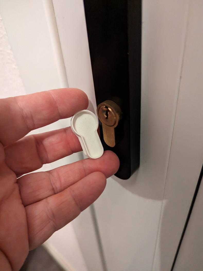 This cover fits over a standard Euro cylinder lock (like the one in most UK homes).